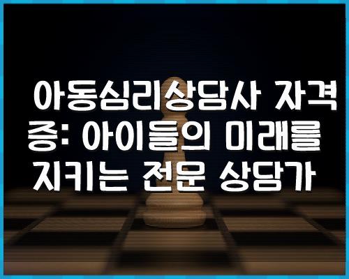 아동심리상담사 자격증은 아이들의 심리적 건강과 행복을 책임지는 전문가로 성장하고 싶은 분들에게 적합한 자격증입니다. 이 자격증은 아이들의 갈등과 문제를 파악하고, 그들이 건전한 사고방식을 갖고 올바르게 성장할 수 있도록 도와주는 역할을 합니다. 아동심리상담사 자격증을 소지하면 어린이들의 미래를 긍정적으로 영향을 미칠 수 있는 기회를 얻을 수 있습니다.