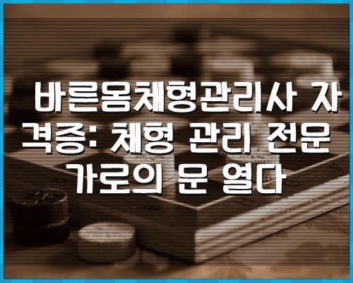 바른몸체형관리사 자격증은 한국무술활법연구회에서 발급되며, 문화체육관광부의 주무부처로 등록되어 있습니다. 이 자격은 올바른 체형을 유지하고 관리하기 위한 지식과 실무 능력을 갖춘 전문가로의 길을 열어줍니다. 민간자격으로서 공인자격을 보유하고 있으며, 주로 개인 사업체나 평생교육원, 주민센터 등에서 체형 관리 지도를 제공하는 업무를 수행합니다.