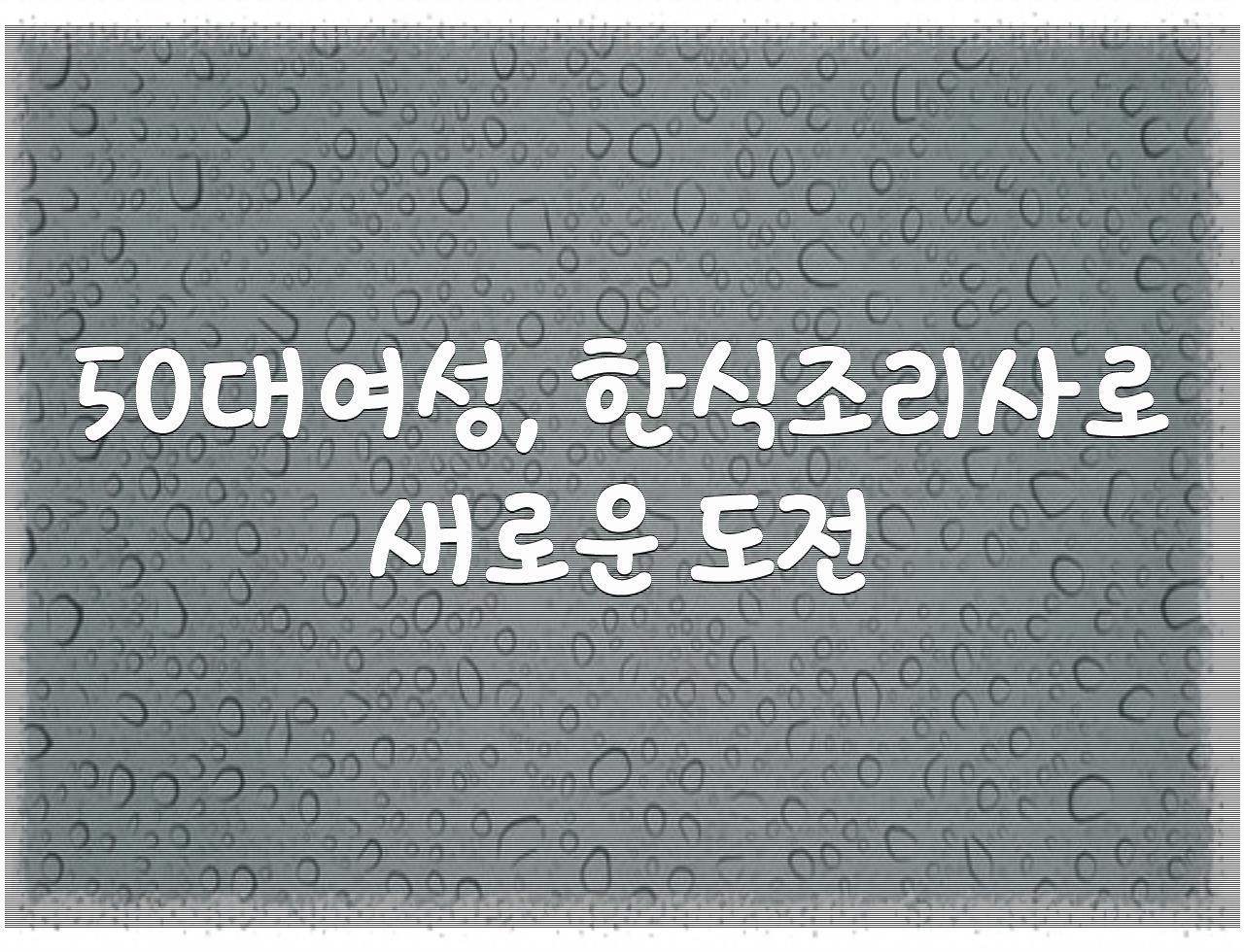 정리해드린 내용은 50대여성, 한식조리사로 새로운 도전 입니다. 부디 조금이라도 도움이 되셨길...