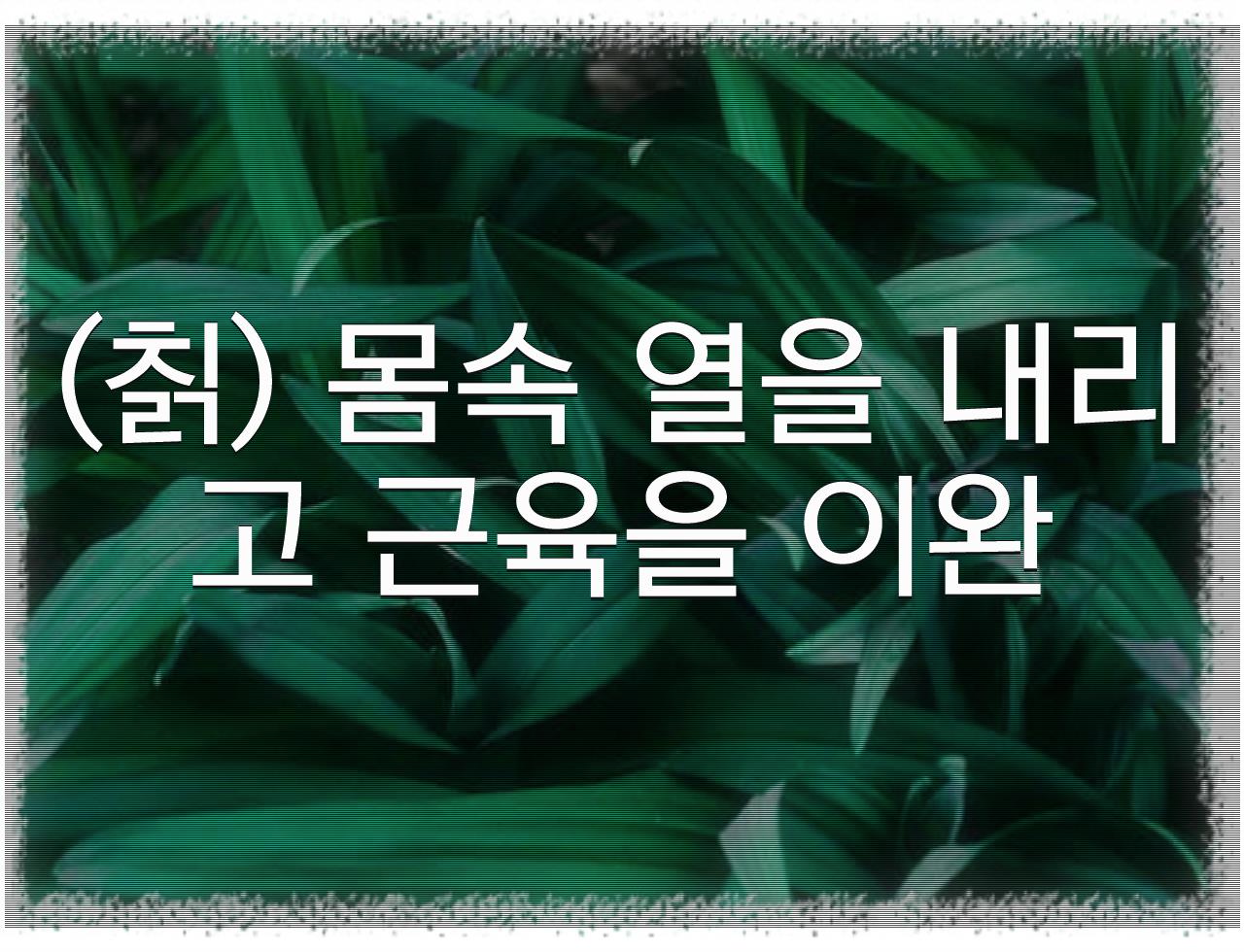 장점: 몸속 열 해소, 근육 이완, 간 건강 개선, 혈액 순환 개선, 면역력 강화 등