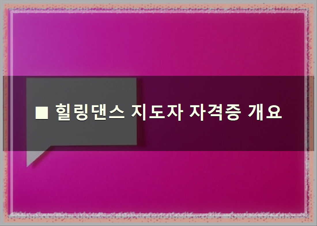 댄스를 통해 몸과 마음을 치유하는 전문가, 힐링댄스 지도자는 대한힐링교육센터에서 발급하는 민간자격증입니다. 문화체육관광부의 주무부처 관리 아래 2016년에 정식으로 등록(등록번호 2016-003016)되어 신뢰성을 더하고 있습니다.