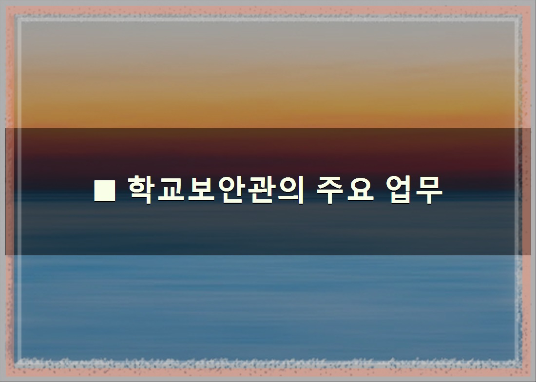 학교보안관 1급 자격증은 다음과 같은 취업 업무 내용을 포함하며, 학교 안전 전문가로서의 역량을 강화합니다.