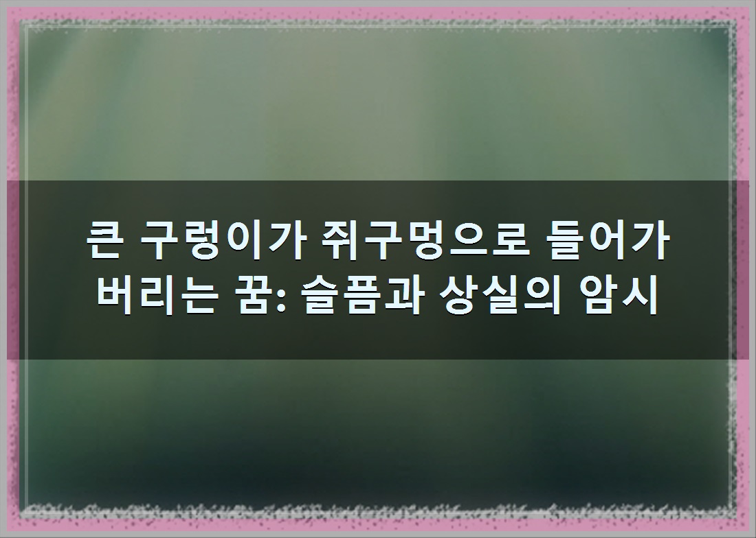커다란 구렁이가 쥐구멍으로 사라지는 꿈은 소중한 것을 잃거나 슬픈 일을 겪을 수 있음을 상징적으로 나타내는 꿈으로, 특히 유산이나 사망과 같은 극단적인 상황을 암시하기도 합니다.