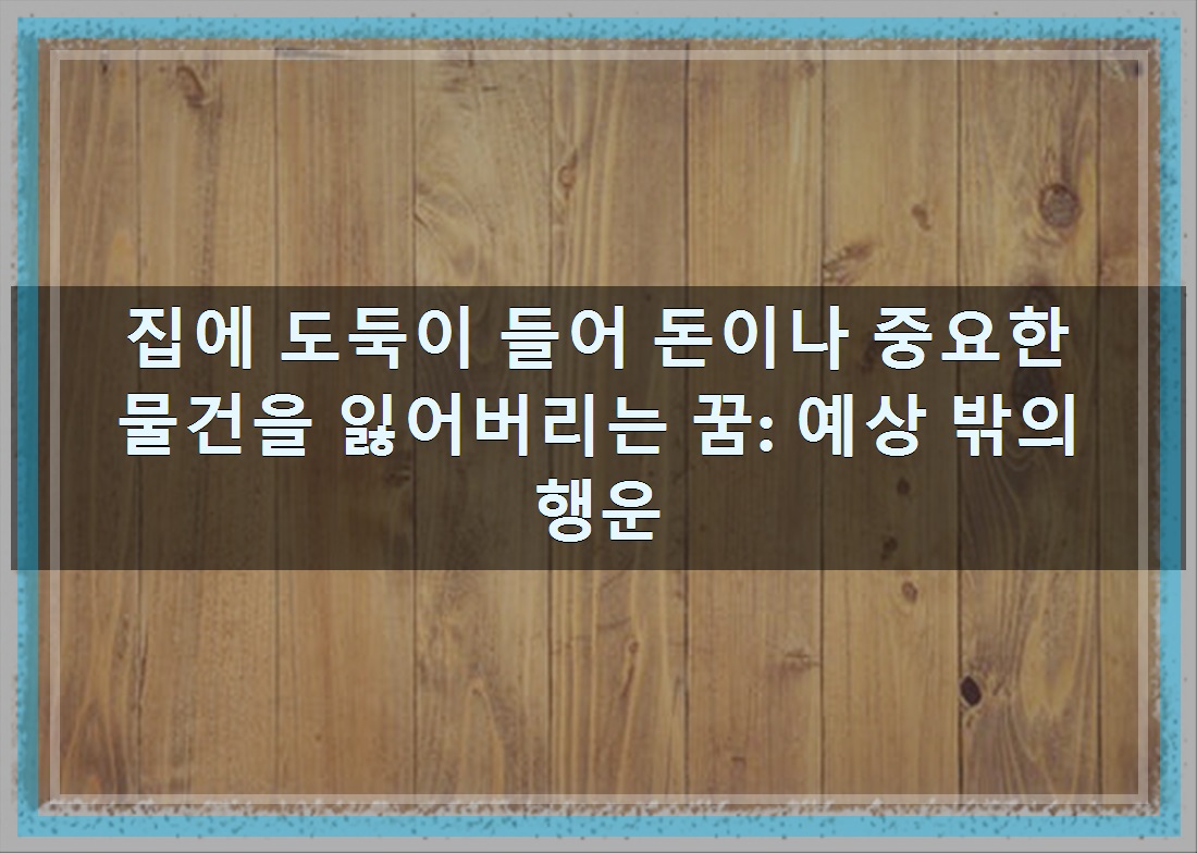 집에 도둑이 들어 돈이나 중요한 물건을 잃어버리는 꿈: 예상 밖의 행운