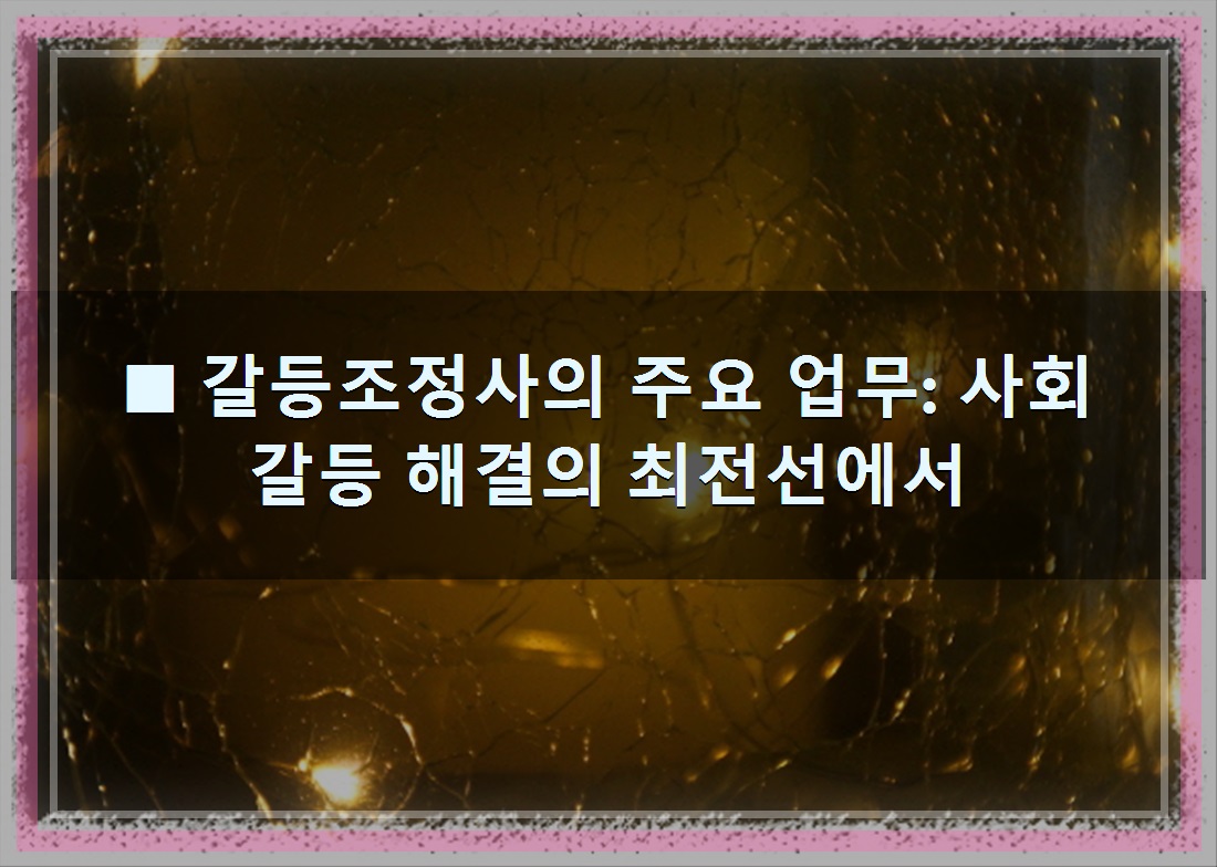 ■ 갈등조정사의 주요 업무: 사회 갈등 해결의 최전선에서